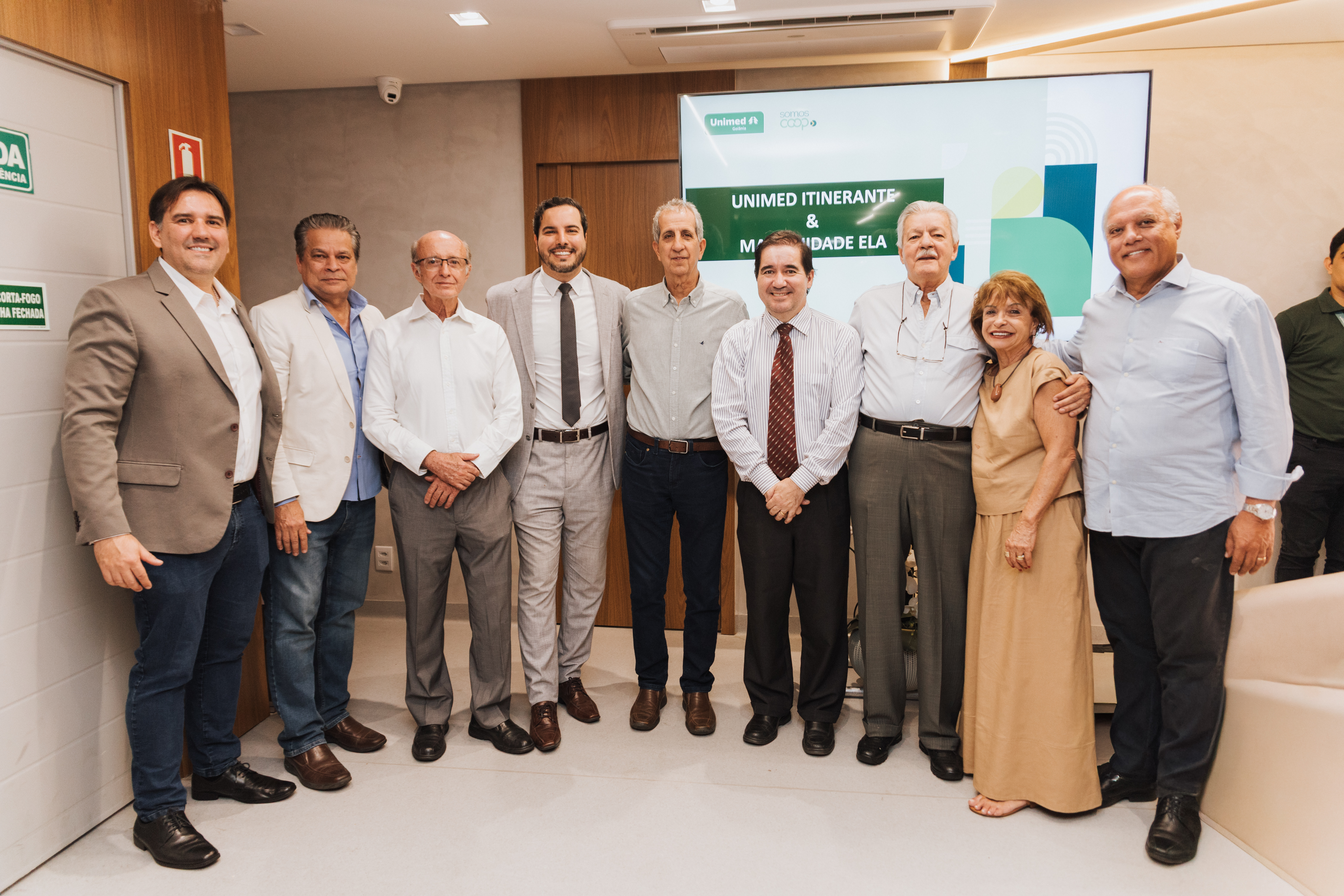 O Unimed Itinerante, programa criado para fortalecer a transparência e ampliar o diálogo direto com cooperados e rede prestadora, realizou, no dia 16 de setembro, mais uma edição na Maternidade Ela. O encontro contou com a presença do presidente do conselho de administração, Dr. Washington Luiz Ferreira Rios, do diretor-presidente da Unimed Goiânia, Dr. Lueiz Amorim Canedo, do conselheiro Dr. Gilson Cassem, além de médicos cooperados e da diretoria da unidade, que levaram dúvidas e acompanharam informações sobre o atual momento da cooperativa.