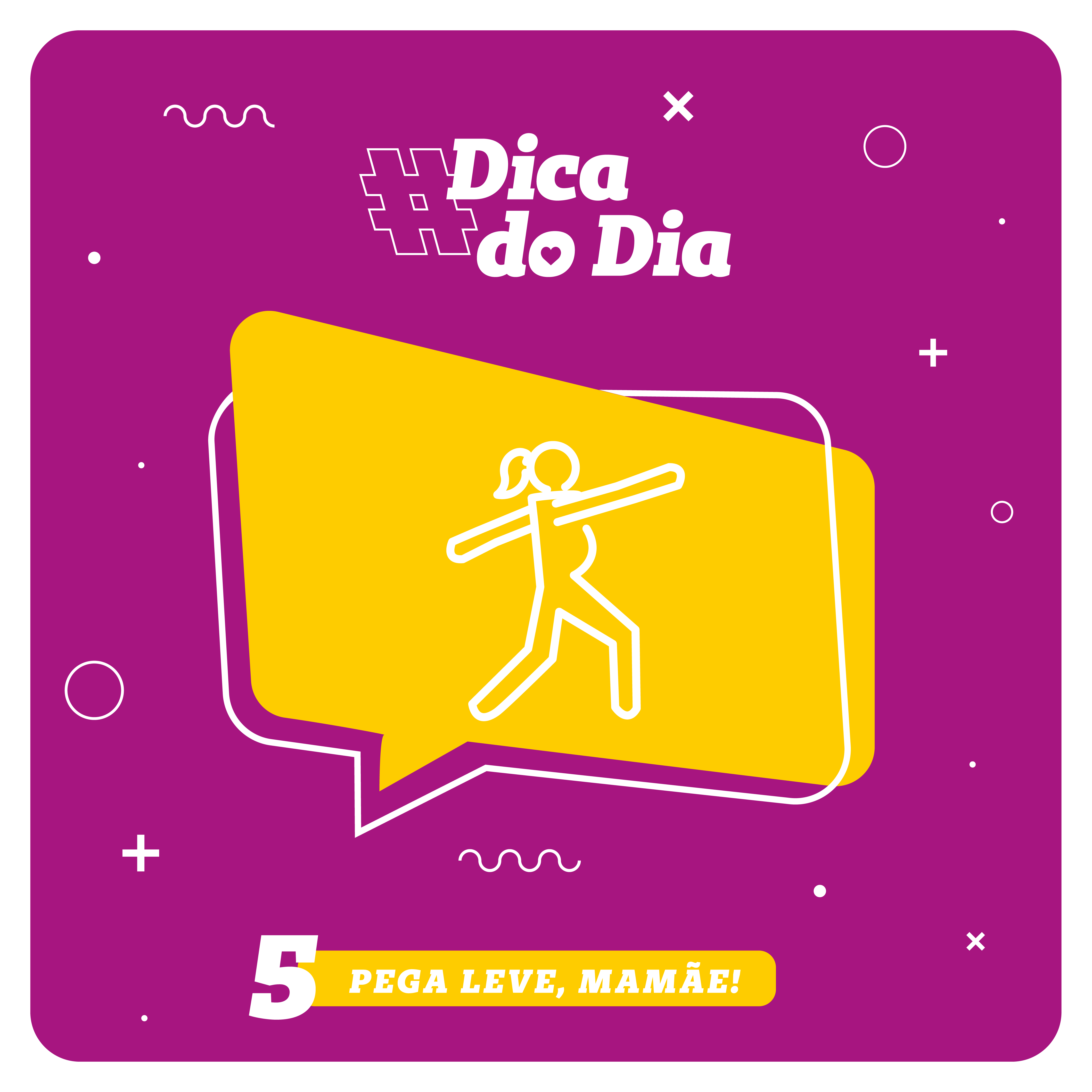 DICA 5. PEGA LEVE, MAMÃE! Evite esportes que tenham riscos de quedas ou impactos. Prefira atividades mais amenas, como caminhadas, natação, hidroginástica e ioga.